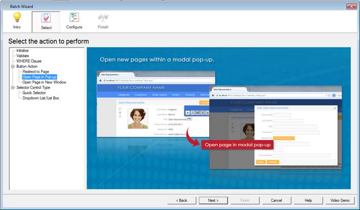 Configuring Modal Pop-up using Batch Wizard